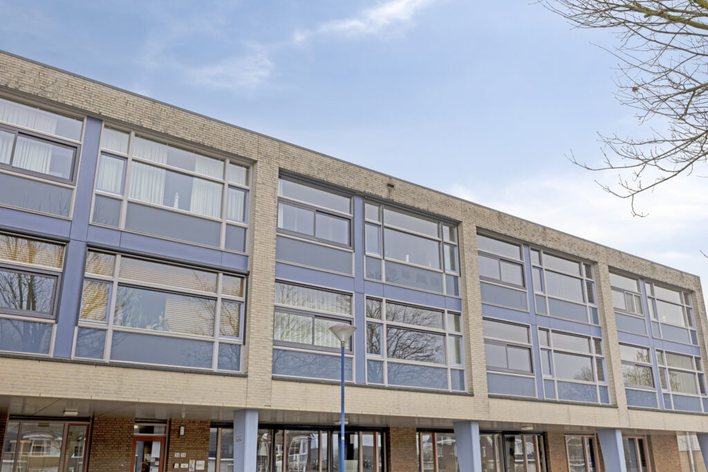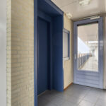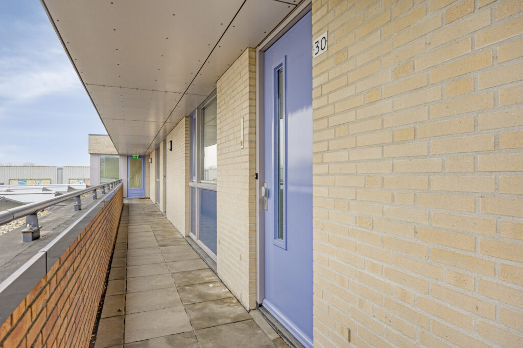 Het appartement is gelegen aan de galerij op de 2e verdieping, bereikbaar via het trappenhuis en via de lift.