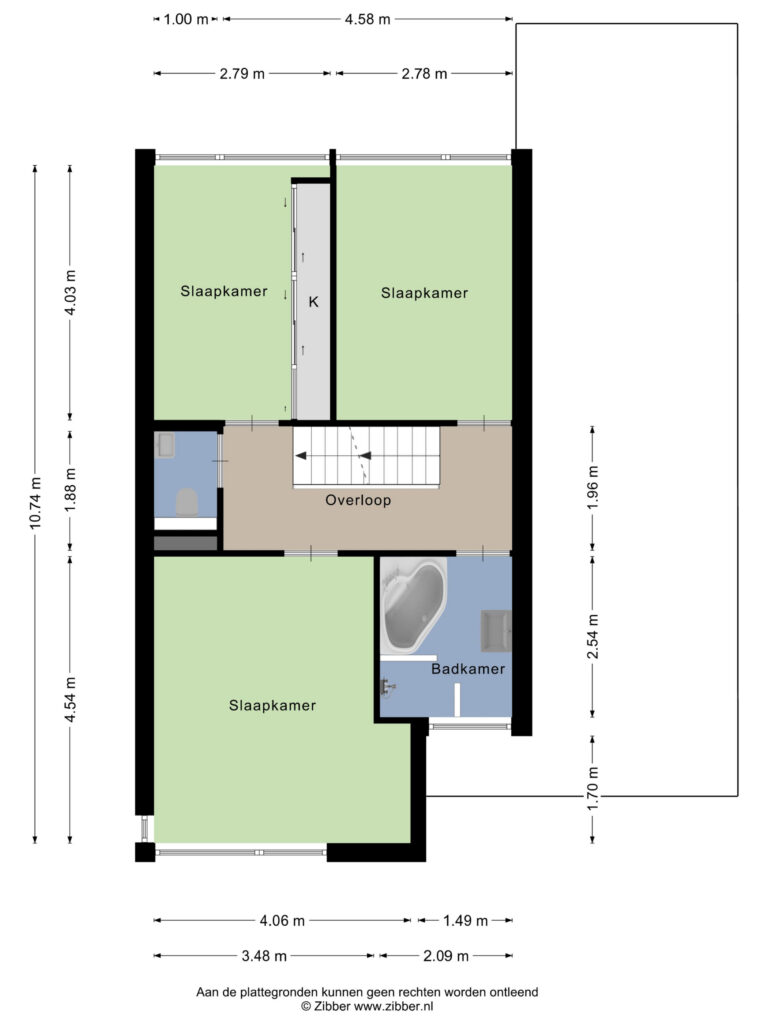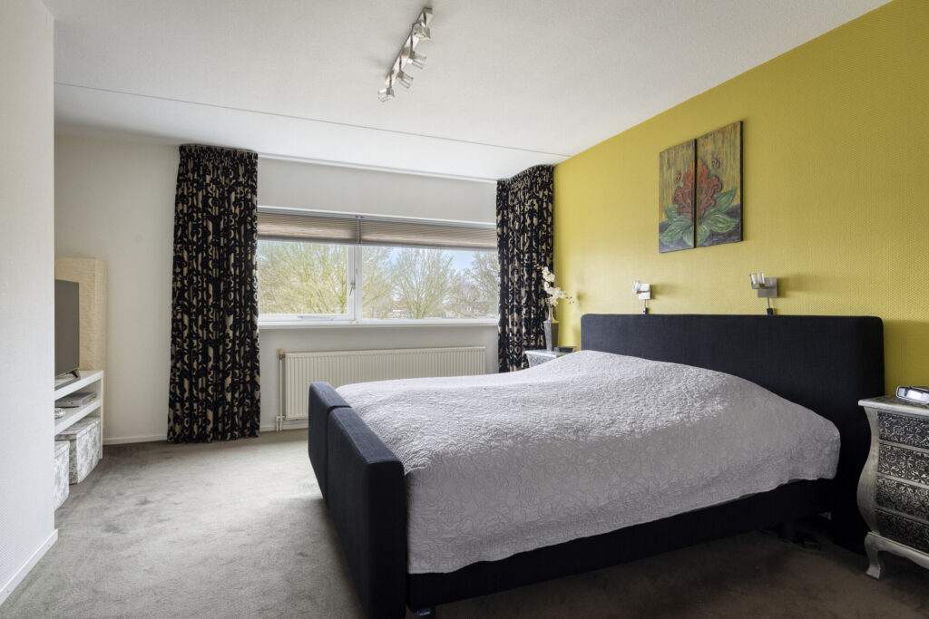 De royale masterbedroom ligt aan de voorzijde en meet circa 5,54 x 3,48 meter. De tweede en derde slaapkamer zijn eveneens ruim en gelijk van formaat.