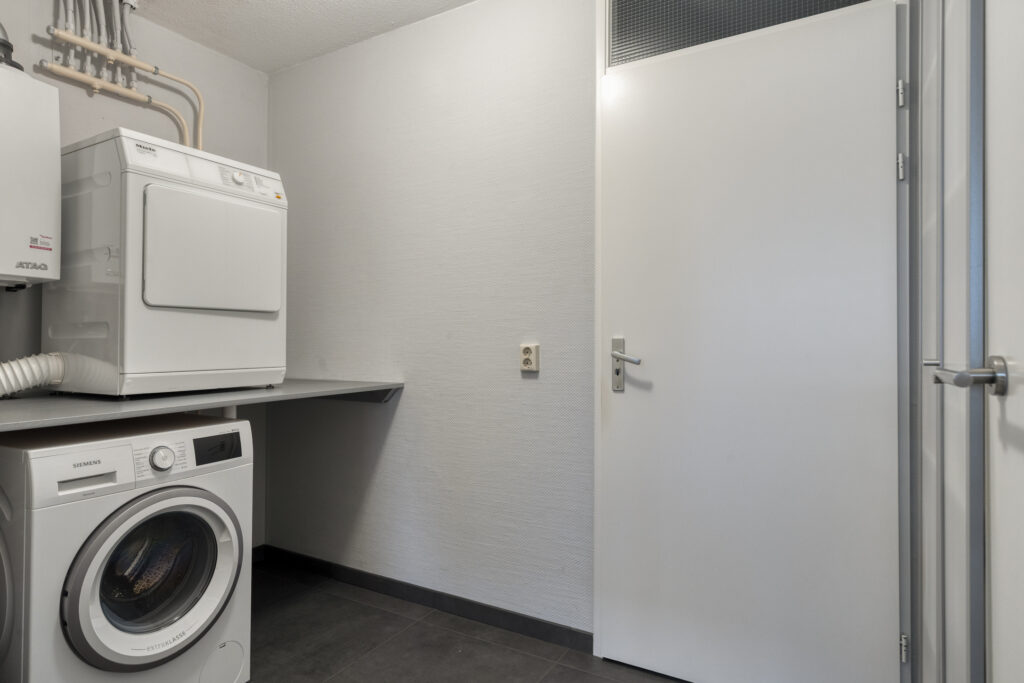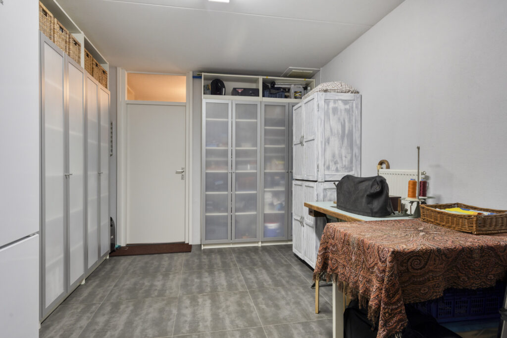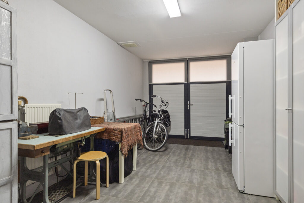 In de bijkeuken bevinden zich de witgoedaansluitingen, de cv-ketel (Atag, 2013) en de mechanische ventilatie-unit. Vanuit hier is tevens de inpandige garage bereikbaar (5.97 x 2.95 m), ideaal te gebruiken als hobbyruimte aan huis.