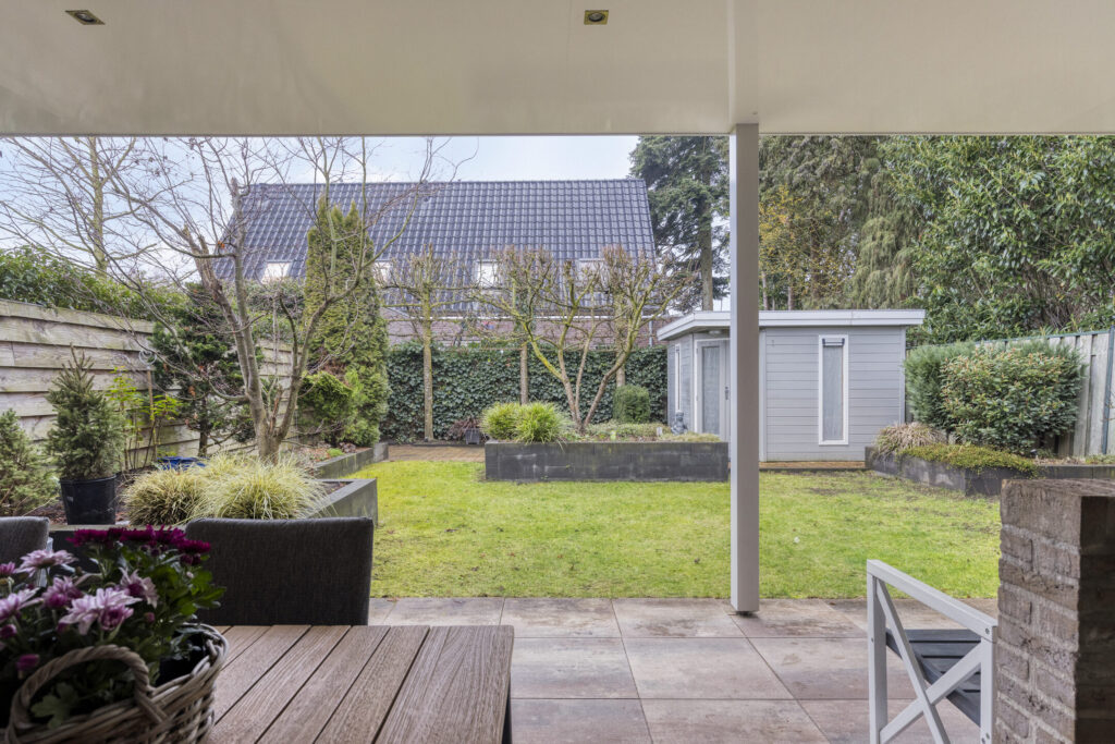 – Zonnige achtertuin op het zuidwesten met luxe tuinoverkapping