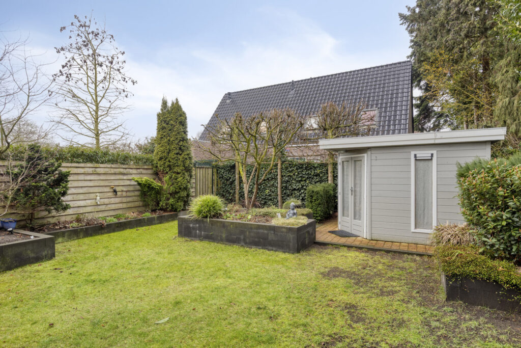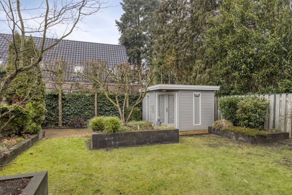 Daarnaast is de tuin voorzien van tuinverlichting en is er een praktische tuinberging met elektra aanwezig, ideaal voor het opbergen van tuingereedschap of fietsen. De tuin beschikt over zowel een voor- als zijtoegang.