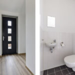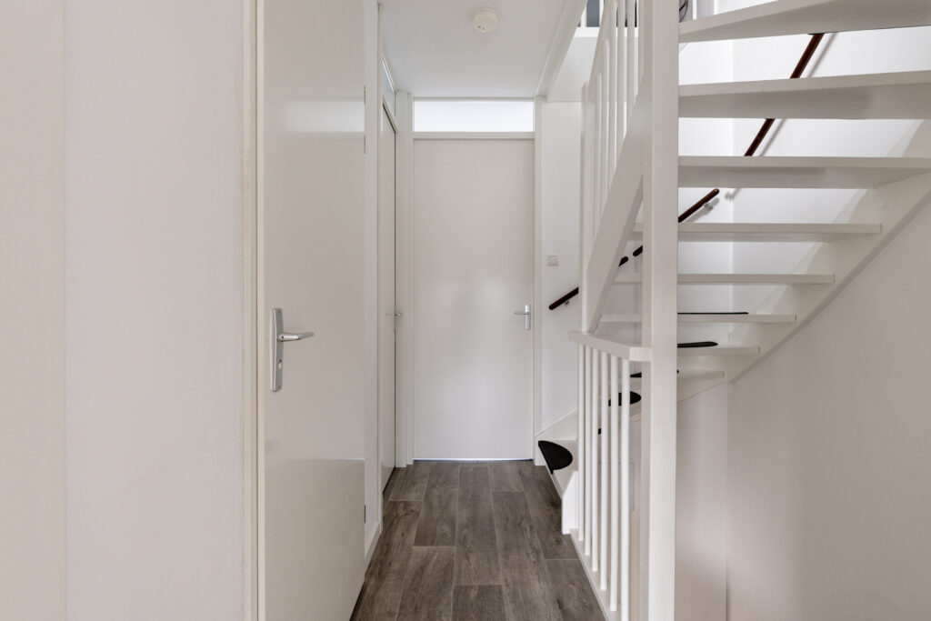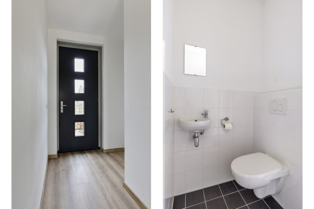 – Entreehal met meterkast en toiletruimte met wandcloset en fonteintje.