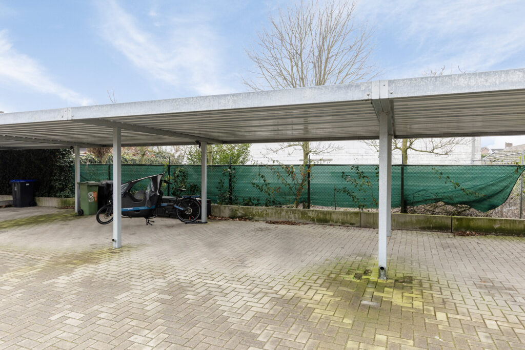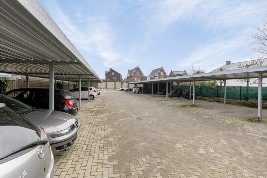 – Via de achterom kom je op een gezamenlijk achter terrein met de 2 eigen parkeerplaatsen met carport.