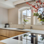 De moderne keuken is uitgerust met een Bora inductiekookplaat met geïntegreerde afzuiging, een wijnklimaatkast, een combi-stoomoven, vaatwasser, Quooker en een ruime koelkast. Een fijne plek om de dag te beginnen met het gezin.