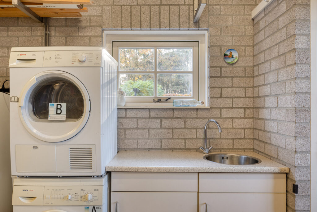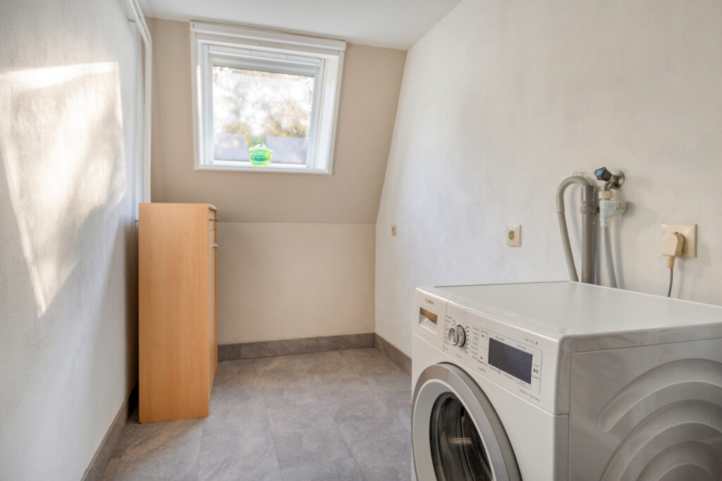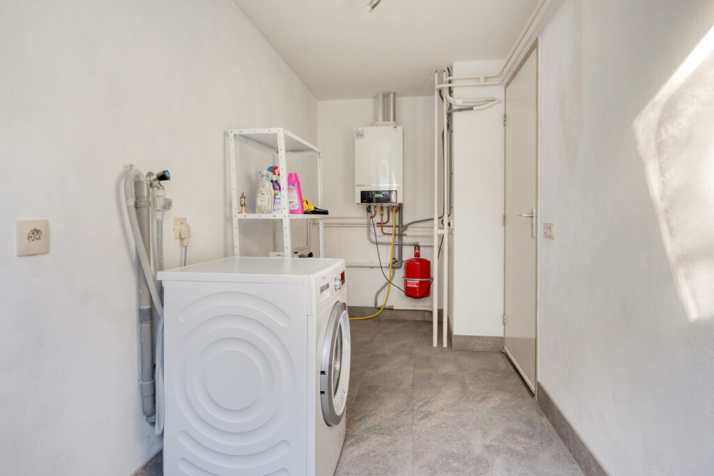 De praktische wasruimte is afgewerkt met een tegelvloer en voorzien van de opstelling van de cv-ketel (Nefit, 2008).