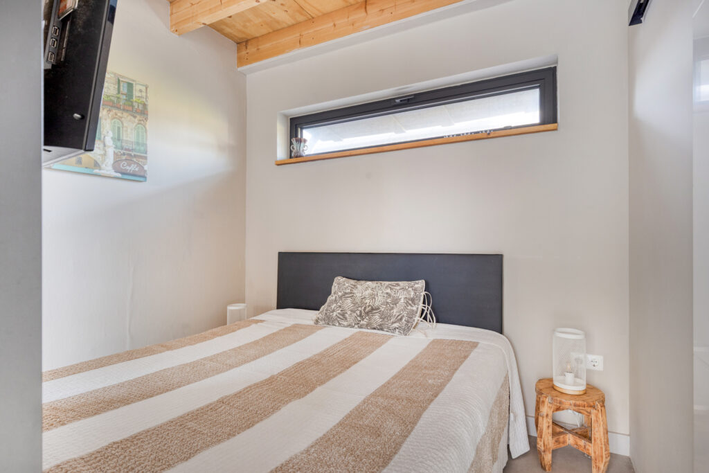 Er is een gastenverblijf in de tuin aanwezig, voorzien van een knusse woon- en slaapkamer met een ensuite badkamer, en daarnaast een airconditioning. De badkamer is keurig afgewerkt met een wastafel met badmeubel, een inloopdouche en een toilet.