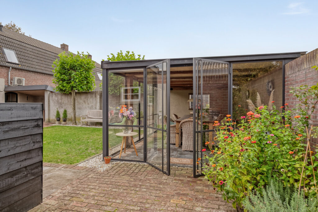 De privacyrijke zij- en achtertuin zijn fraai aangelegd met bestrating, een gazon en diverse borders met volwassen beplanting. Dankzij de gunstige ligging aan de zij- en achtertuin zijn er zowel zonnige als schaduwrijke plekken te vinden. Bovendien beschikt de tuin over een luxe terrasoverkapping met afsluitbare glaspanelen. Een heerlijke plek om het hele jaar door van de buitenruimte te genieten.