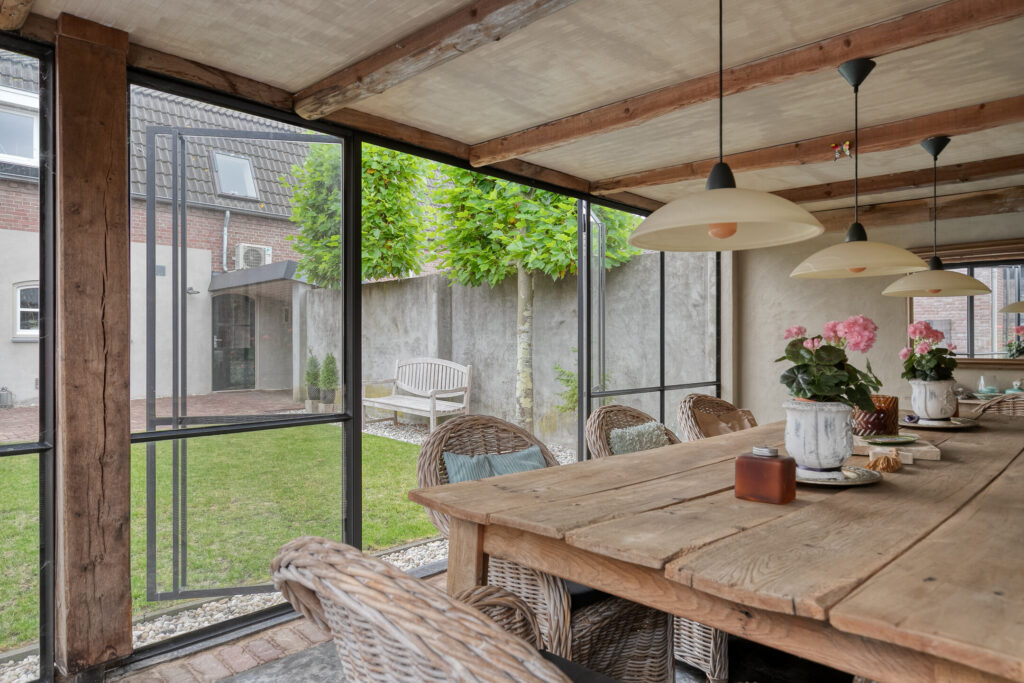 – Fijne terrasoverkapping, af te sluiten met glazen panelen