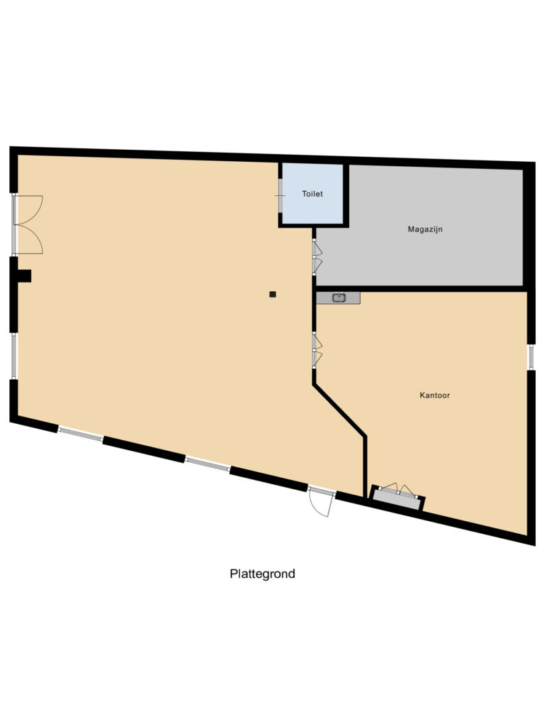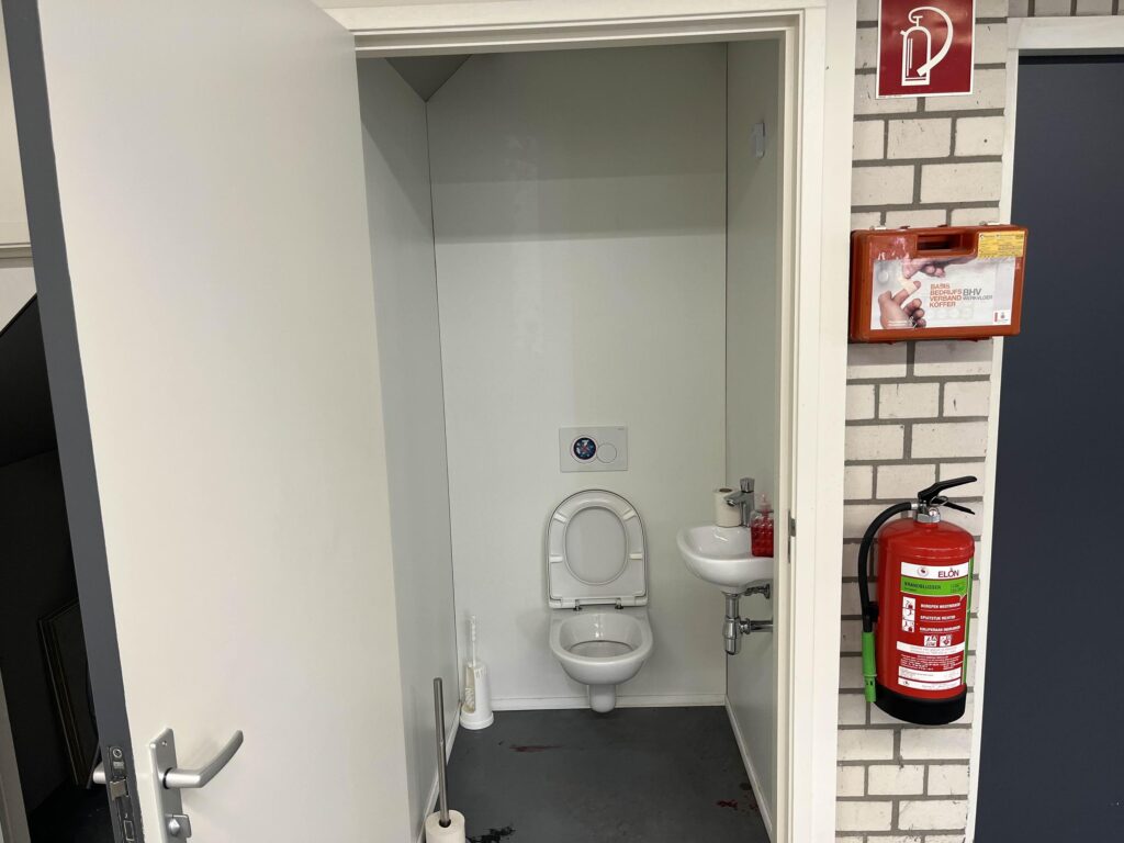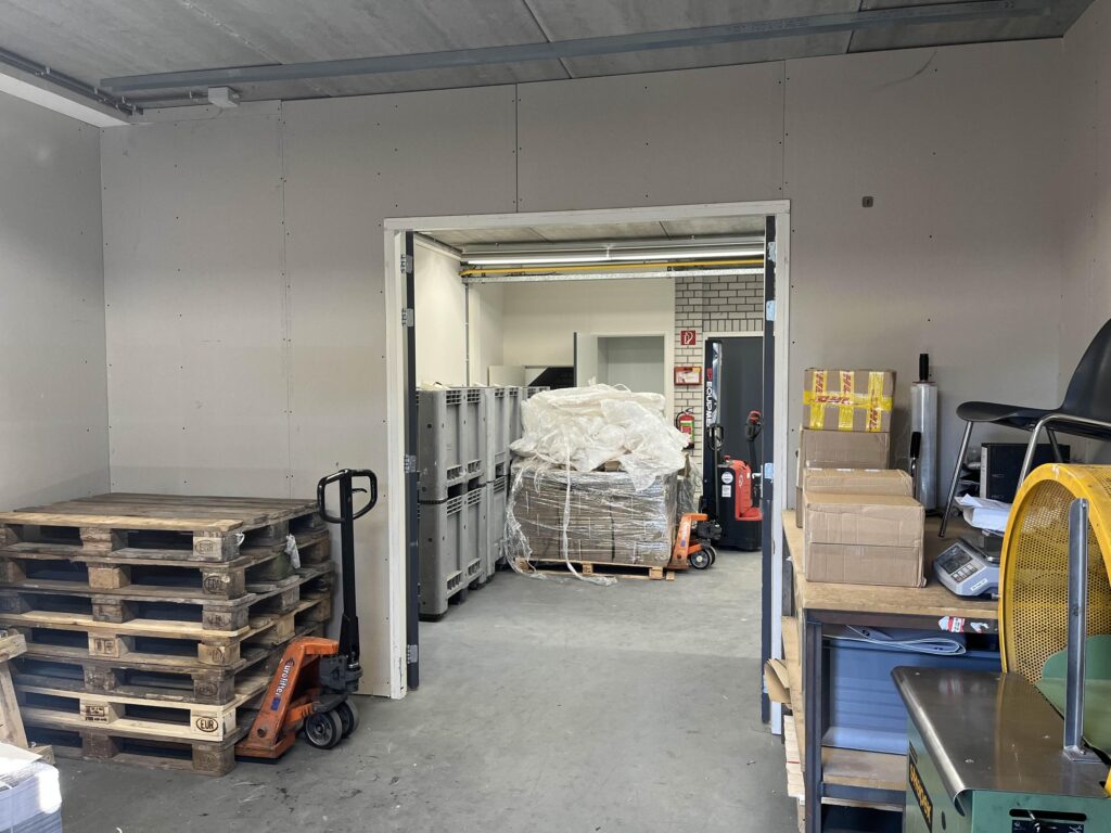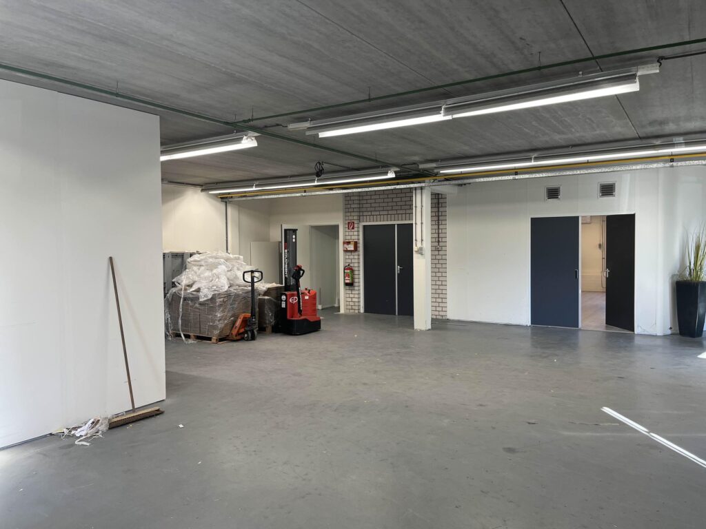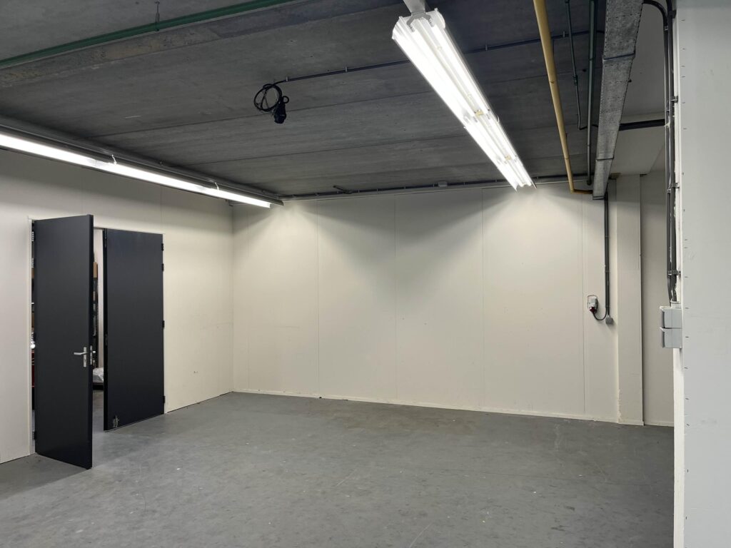 De bedrijfshal (totaal circa 170 m2) beschikbaar via de zijingang van het pand wat volledig een betonnen vloer heeft. Waarbij je ook nog 2 opbergruimtes hebt ter beschikking. Daarbij aansluitend zit de ruime Kantoorruimte met volop licht inval wat dan ook volledig verwarmd is met radiatoren.