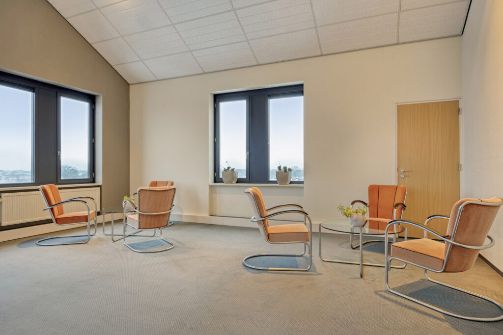 Op dezelfde etage is een vergaderruimte die in overleg met verhuurder beschikbaar is voor tijdelijk gebruik.