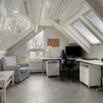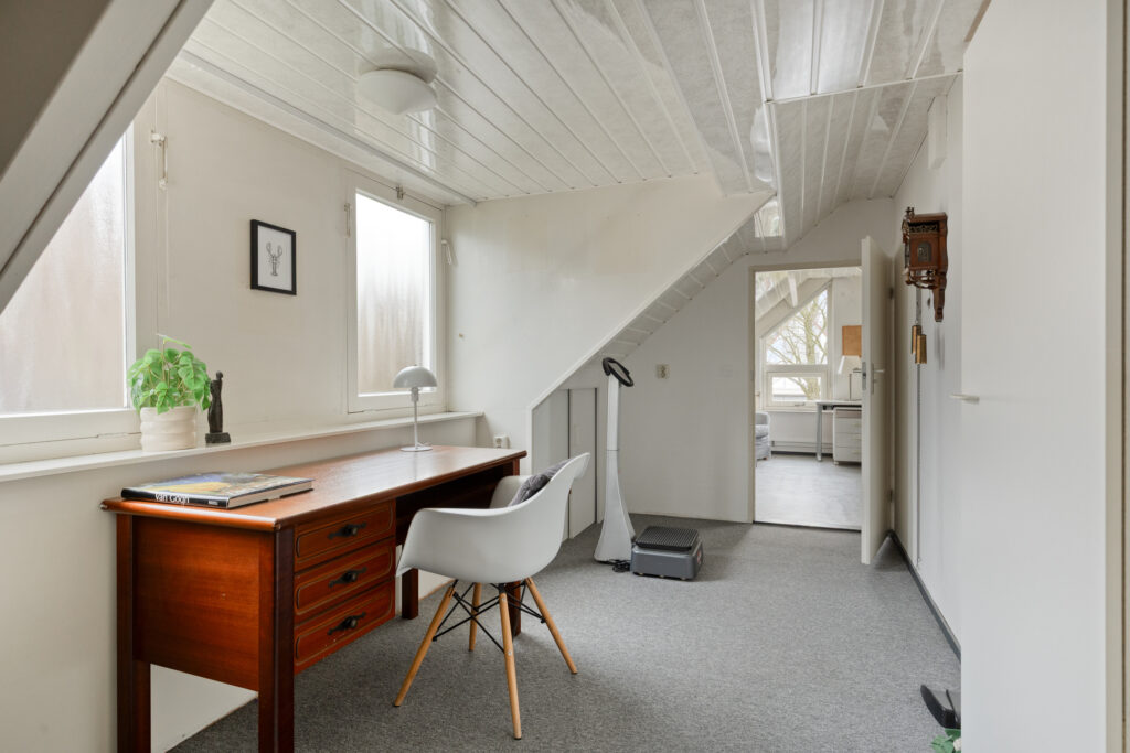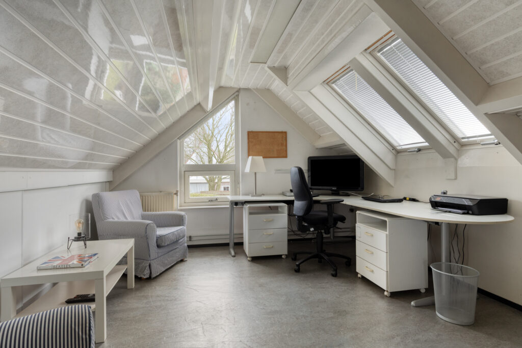 Boven de garage is een opbouw gerealiseerd, waardoor een extra slaap- of werkkamer is ontstaan. Deze ruimte is gedeeltelijk voorzien van dubbel glas en kan multifunctioneel worden ingericht. Ideaal voor een hobby- of werkkamer aan huis.