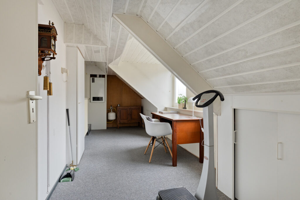 Een vaste trap biedt toegang tot de zolderverdieping. Deze verdieping biedt volop ruimte om spullen op te bergen.