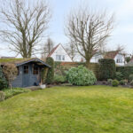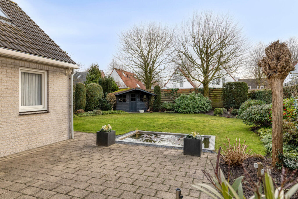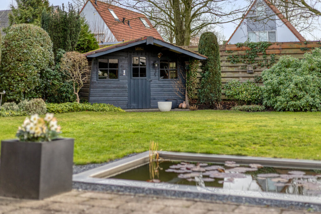 De achtertuin ligt op een prachtig perceel van 468 m² en is gesitueerd op het zuidoosten. Dankzij de royale diepte en vrije ligging geniet de tuin van veel privacy. De tuin is verzorgd aangelegd met een gazon, diverse volgroeide beplanting en een vijver. Daarnaast is er een praktische tuinberging aanwezig en een achterom. Een heerlijke plek om op de zomerdagen te genieten!