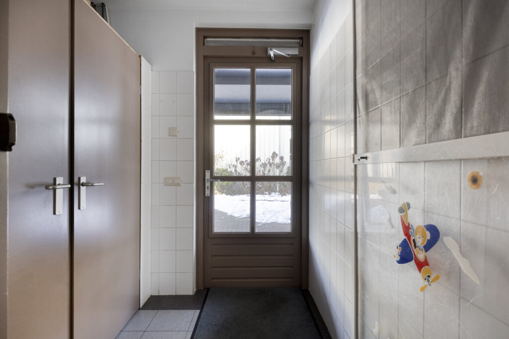 De entreehal biedt toegang tot het deels betegelde toilet, de meterkast en de trap naar de eerste verdieping. Vanuit de hal kom je in de woonkamer.