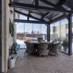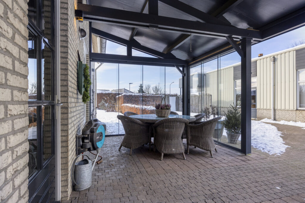 Het royale perceel van 1.290 m² biedt zowel zon- als schaduwplekken. Aan de woning is een luxe overkapping met glazen pui gerealiseerd. Daarnaast beschikt de tuin over een groot gazon met ingebouwd zwembad en biedt het een hoge mate van privacy.