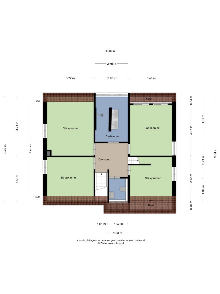 De overloop geeft toegang tot vier ruime slaapkamers, de badkamer en het separaat toilet. Alle slaapkamers zijn voorzien van een laminaatvloer, stucwerk wanden en plafonds.