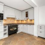 De ruime keuken is gesitueerd aan de achterzijde van de woning en biedt voldoende ruimte voor het plaatsen van een grote eettafel. De keuken is uitgerust met een granieten werkblad, een 6-pits gasfornuis met oven, een vaatwasser en een magnetron.