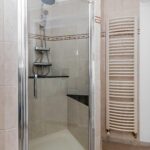 Via de achterdeur kom je binnen in de bijkeuken. Hier bevinden zich het gemoderniseerde toilet, de meterkast en een bergkast met daarin de cv-installatie.