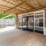 De onderhoudsvriendelijke achtertuin ligt op het noordwesten en is voorzien van een overkapping met een houten vlonderterras.