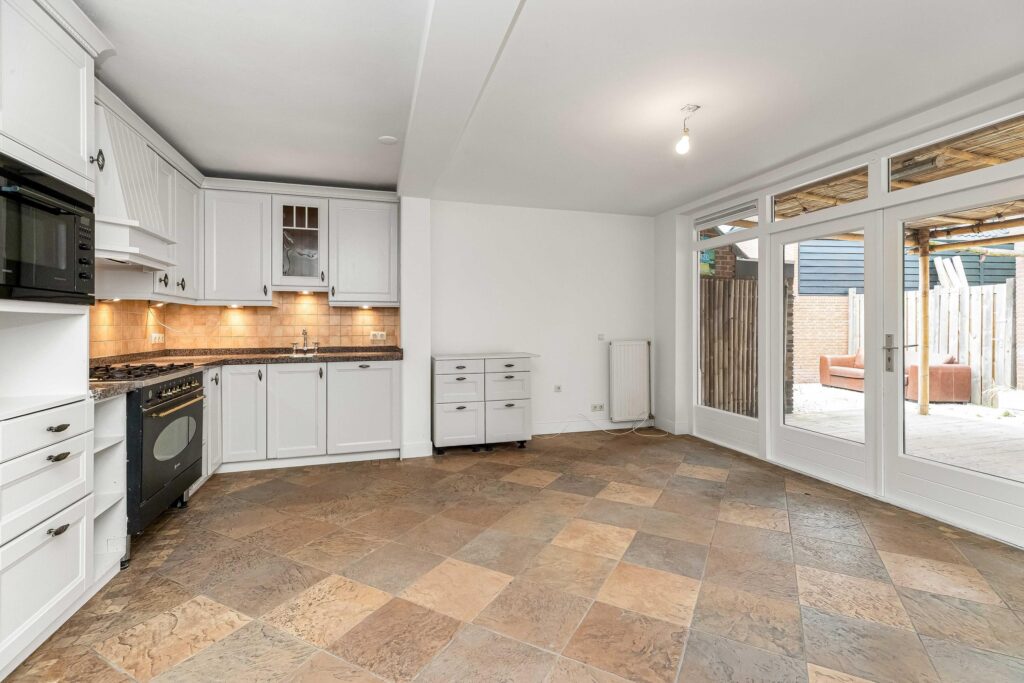Via de keuken is tevens de praktische trapkast bereikbaar. Middels dubbele openslaande deuren heb je direct toegang tot de achtertuin.