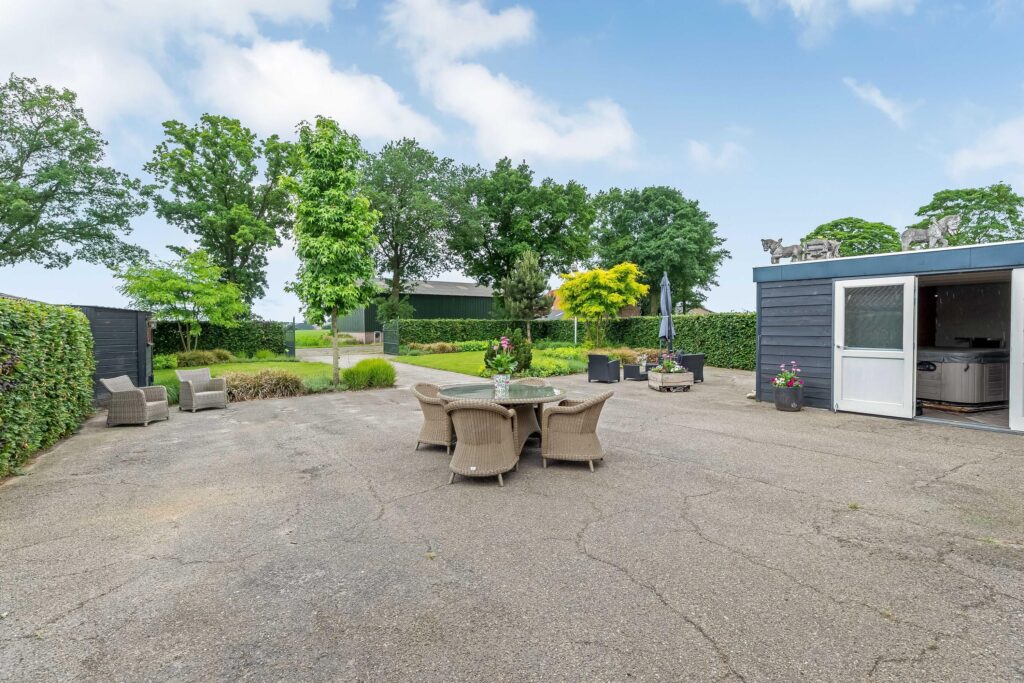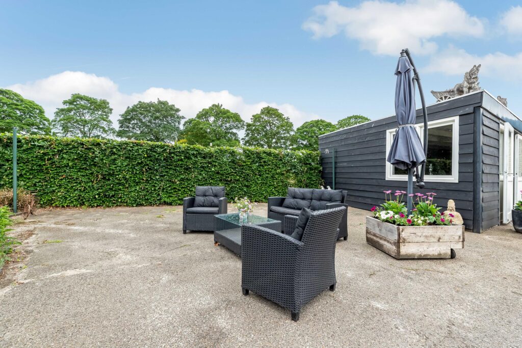 Een berging aan de woning is door de openslaande deuren ook te gebruiken als overkapping.
