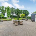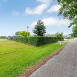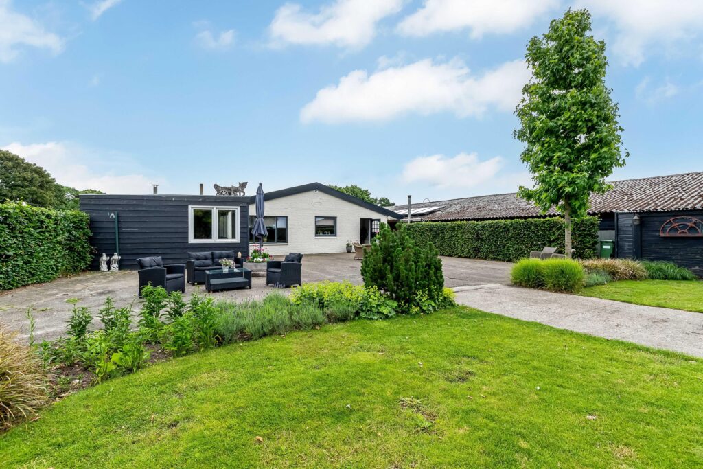 De tuin van de woning is momenteel aan de voorzijde gelegen en bereik je vanaf de weg via een afsluitbare poort. Het geheel is voorzien van verharding voor o.a. het parkeren van auto’s en terrassen, een gazon en vaste beplanting.