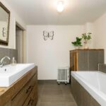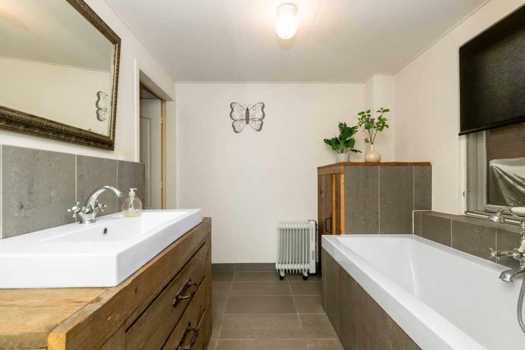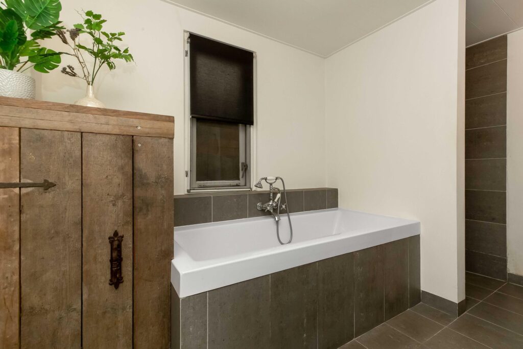 De woning beschikt over 3 slaapkamers. De moderne badkamer is deels betegeld en deels voorzien van stucwerk. Deze is voorzien van een ligbad, inloopdouche en dubbele wastafel op meubel.