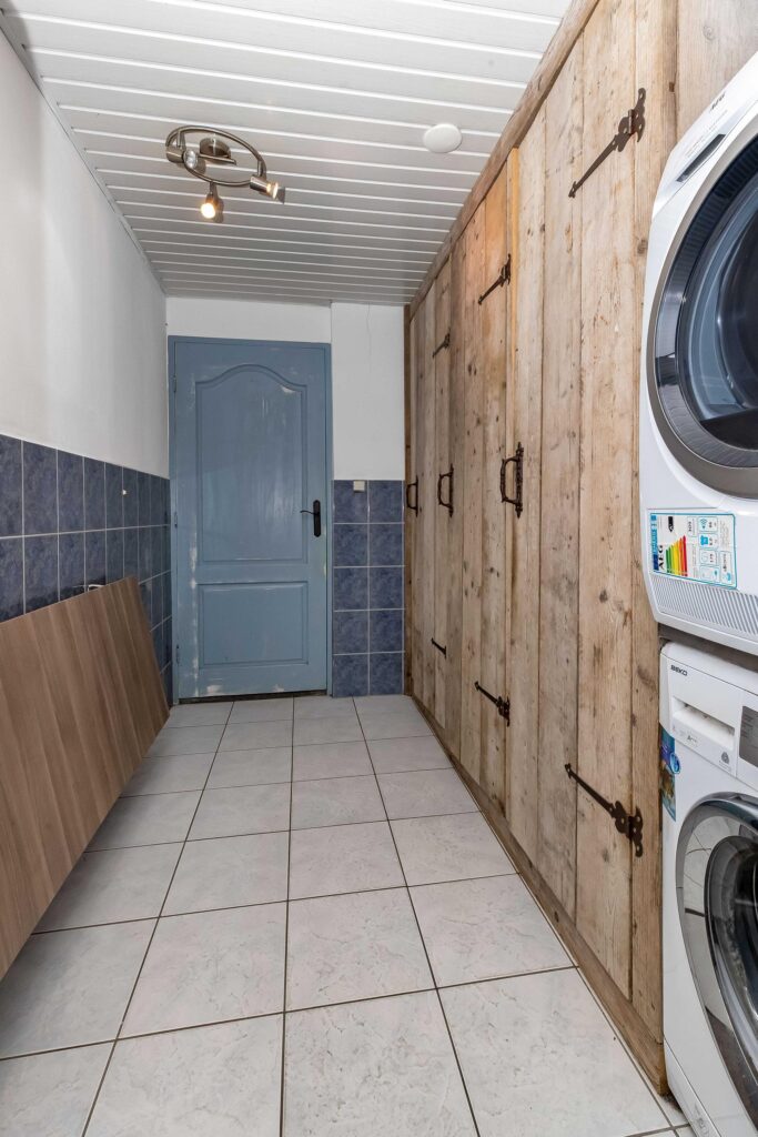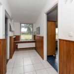 Als je de voordeur door gaat kom je in een hal met plek voor een garderobe en een toiletruimte met toilet en fonteintje. In het toilet is tevens een vlizoluik voor toegang tot bergzolder.