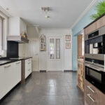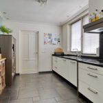 De gehele begane grond is afgewerkt met een tegelvloer en comfortabele vloerverwarming. De moderne keuken is compleet uitgerust met hoogwaardige inbouwapparatuur, waaronder een 5-pits inductiekookplaat, vaatwasser, koelkast, ingebouwd koffieapparaat en combi-oven.