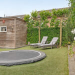 De fraai aangelegde en onderhoudsvriendelijke achtertuin is gelegen op het oosten en meet circa 17 bij 12 meter. Dankzij de ruime opzet en gunstige ligging geniet je hier volop van de zon. De tuin is voorzien van bestrating en kunstgras. Direct aan de woning grenst een sfeervolle overkapping met lichtstraat en ingebouwde spots. Daarnaast is er een ruime tuinberging aanwezig.