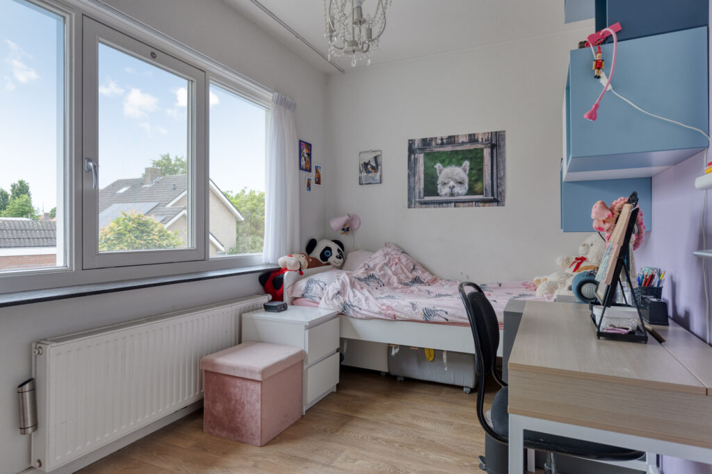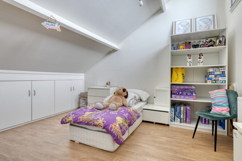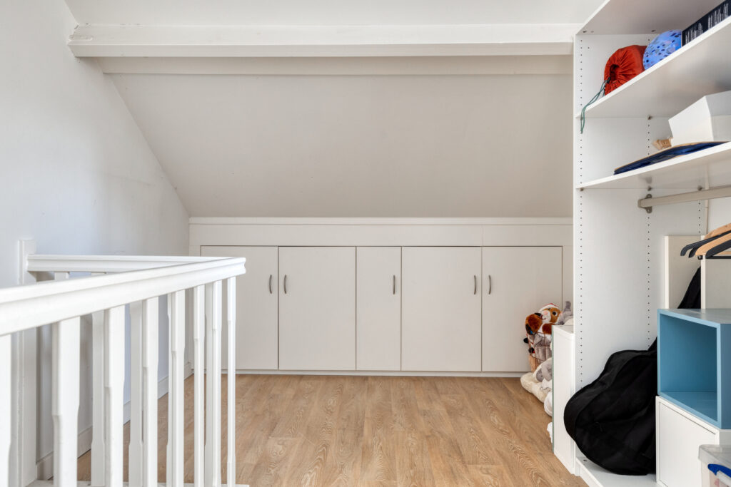 Op de tweede verdieping vind je een ruime overloop met bergruimte onder het schuine dak én een vierde, volwaardige slaapkamer.