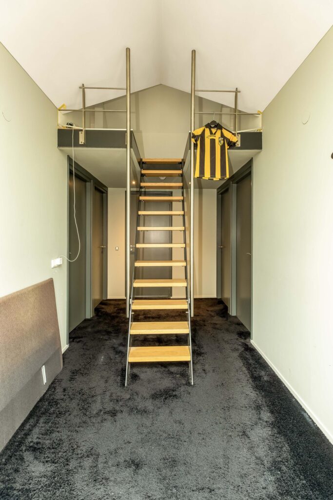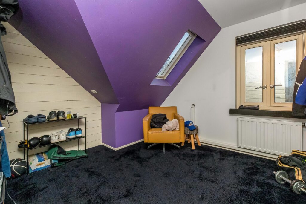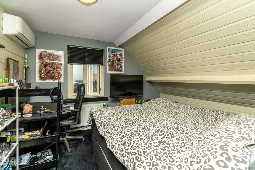 Via de loopbrug heb je toegang tot de overige 4 slaapkamers, gelegen in de oorspronkelijke woning. Middels een vaste trap is een bergzolder op de 2e verdieping te bereiken.