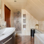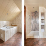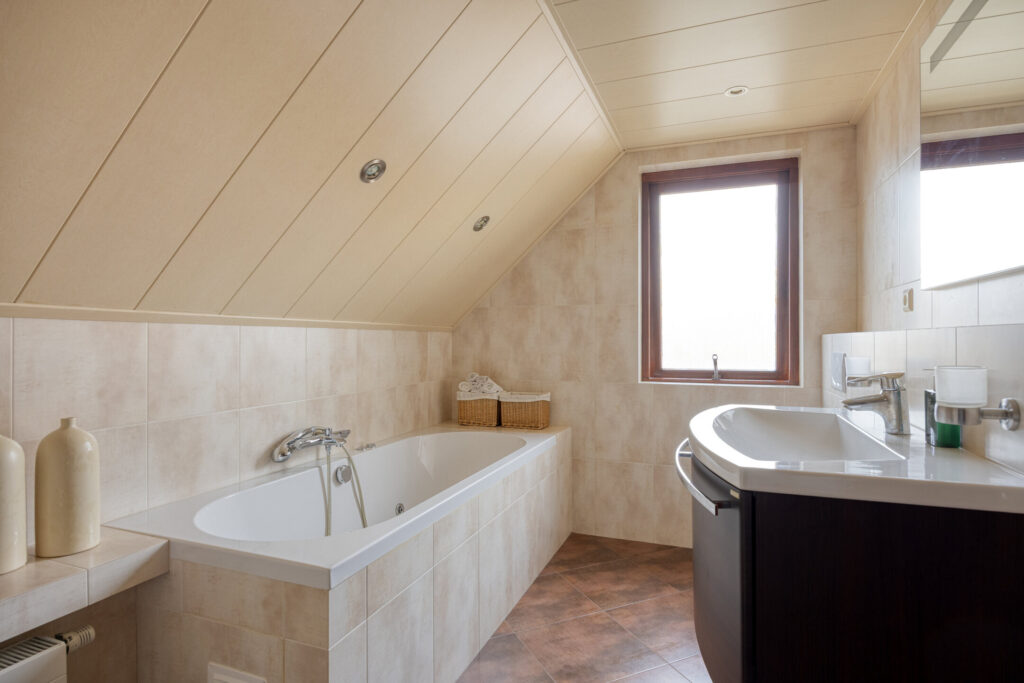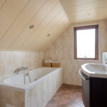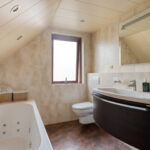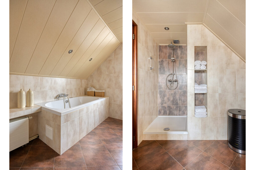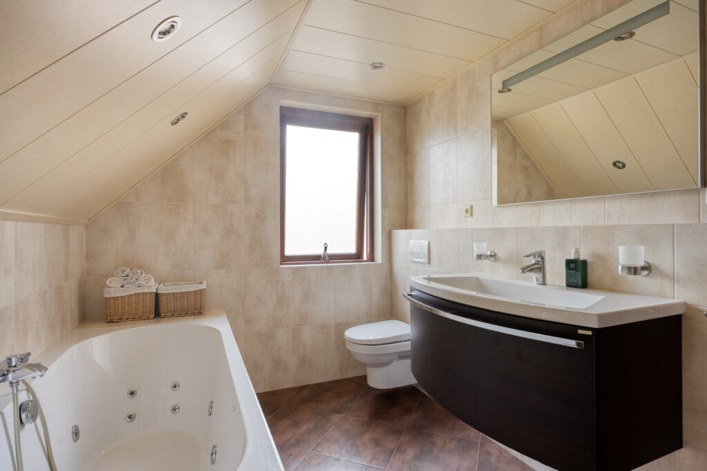 De ruime badkamer is in 2010 vernieuwd en compleet uitgevoerd met een whirlpool, wastafel met meubel, toilet en een douche voorzien van zowel een regen- als handdouche.