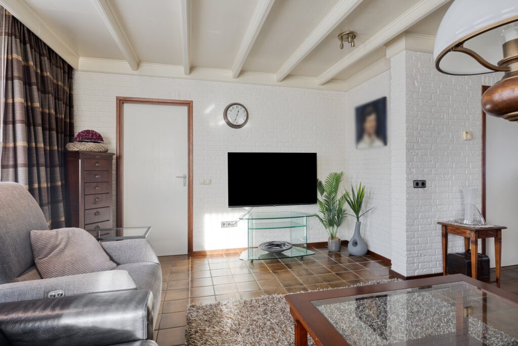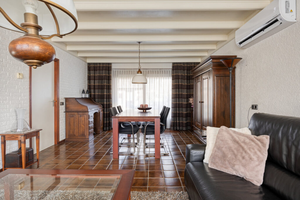 De woonkamer is ruim en licht van opzet en biedt voldoende ruimte voor zowel een comfortabele zithoek als een eethoek. Dit jaar (2025) is er een airconditioning geplaatst, waarmee de ruimte ook verwarmd kan worden.