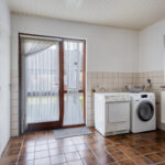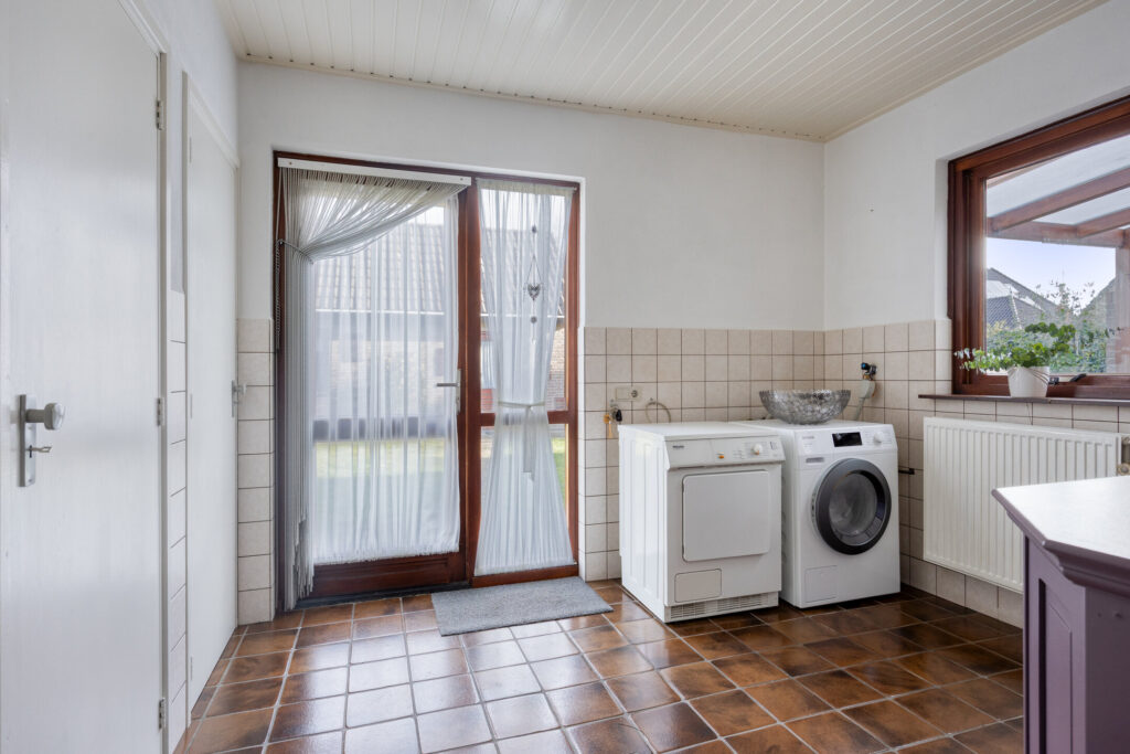 In de bijkeuken bevinden zich de aansluitingen voor de wasapparatuur en drie vaste kasten. Ook heb je vanuit hier toegang tot de achtertuin.