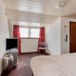 De tweede slaapkamer, gelegen aan de achterzijde, heeft eveneens een prettig formaat (3,3 x 3,4) en is voorzien van een vaste kast.