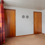 De overloop geeft toegang tot drie slaapkamers, de badkamer en de vaste trap naar de tweede verdieping.