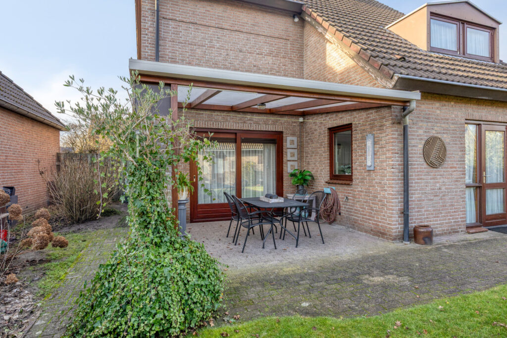 Via de schuifpui is er direct toegang tot de achtertuin met overkapping.