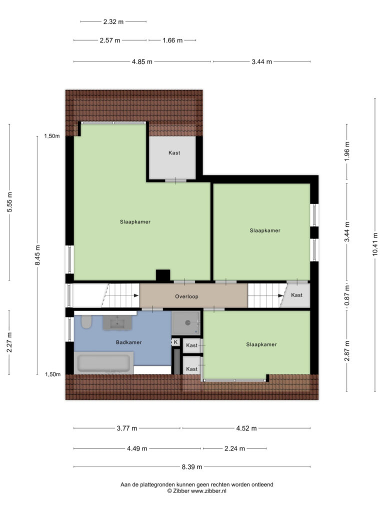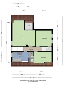 De derde slaapkamer (2,9 x 4,5 ) bevindt zich aan de voorzijde en is voorzien van eenzelfde afwerking.