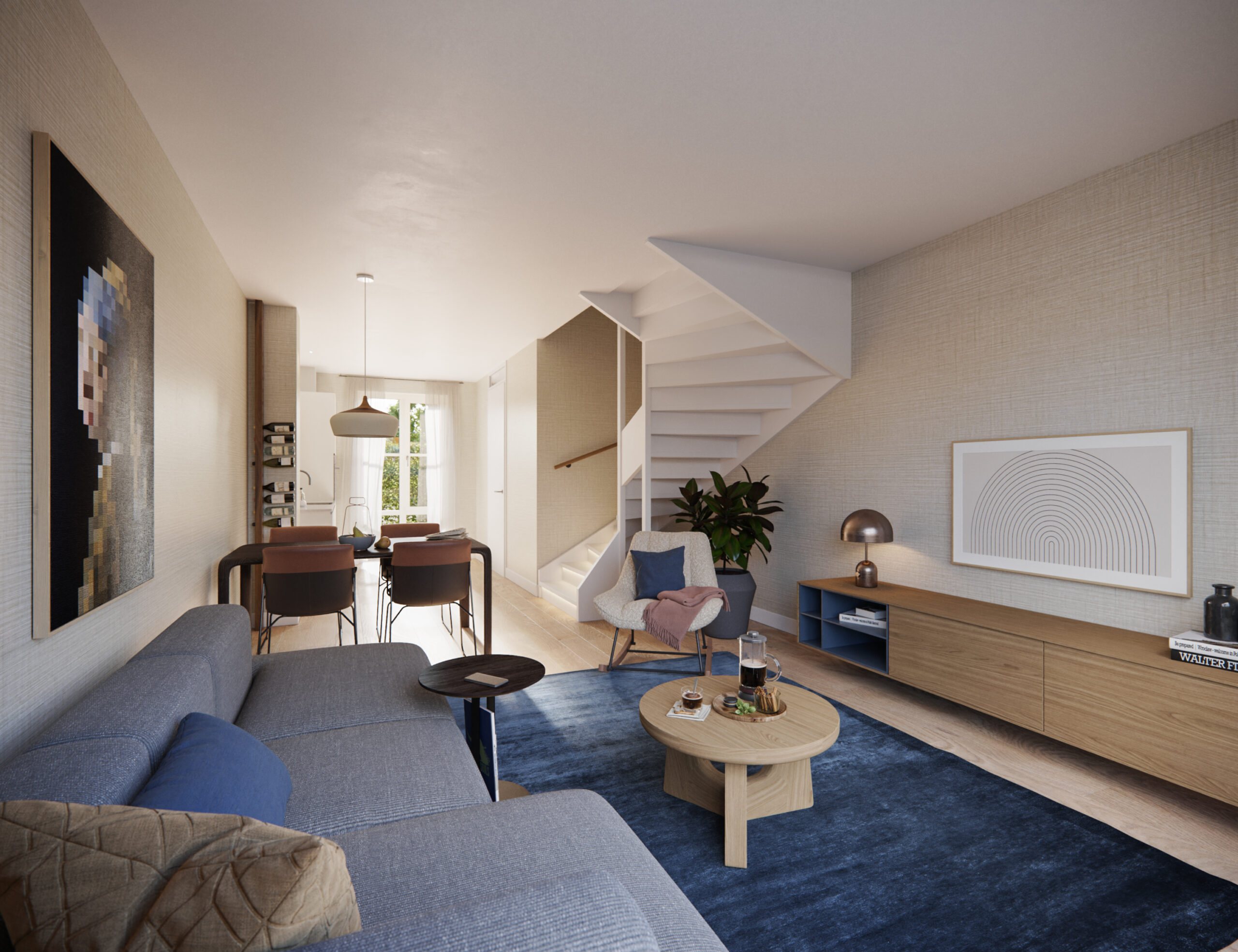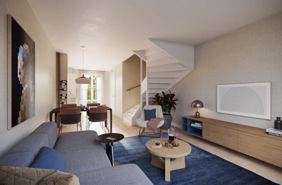 De tussenwoning biedt je een gezellige en lichte leefruimte in een groene straat. De woonkamer kijkt uit op de achtertuin, wat zorgt voor een rustige en groene woonbeleving. De keuken aan de voorzijde is praktisch ingericht en vormt een fijne plek voor dagelijkse momenten. Op de verdieping zijn twee slaapkamers aanwezig, geschikt voor een gezin, hobbykamer of thuiswerkplek. De badkamer is modern en overzichtelijk ingedeeld. De achtertuin biedt ruimte voor ontspannen, tuinieren of spelen. De rijwoningen vormen samen een sfeervolle straatwand en geven de buurt een vriendelijke uitstraling.